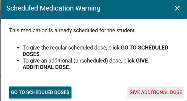 The Administer icon is now available even when a schedule exists. Clicking Administer will display a warning and provide the option to branch to the regular schedule or to administer an additional dose.